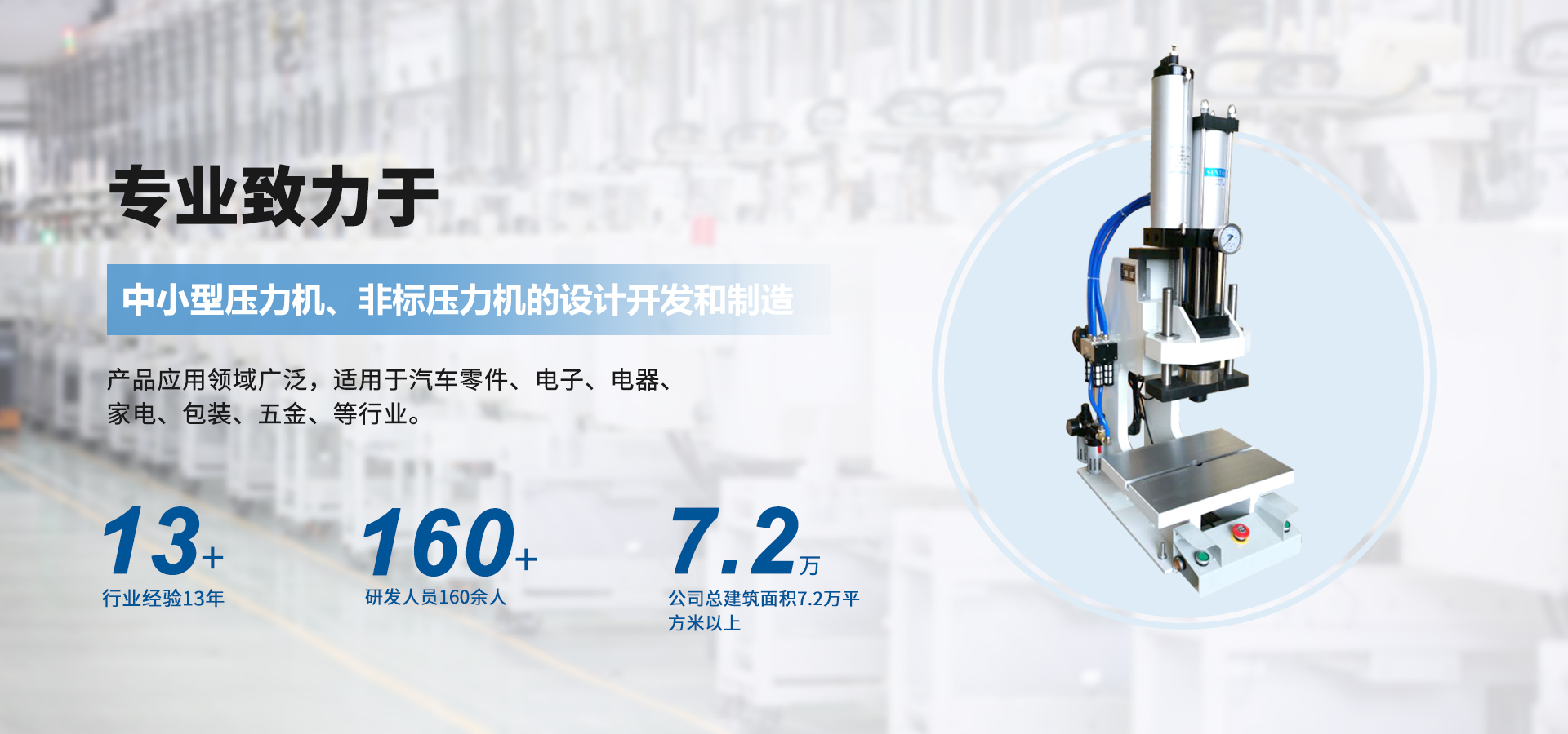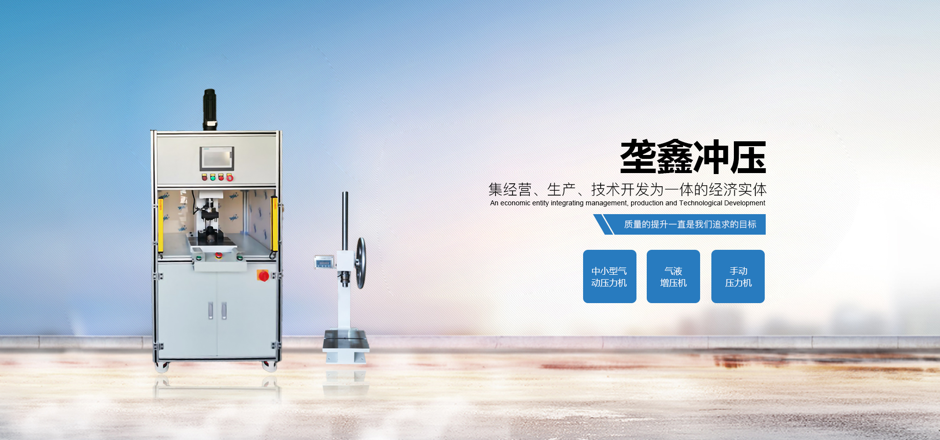 煙臺壟鑫沖壓設備有限公司是集經(jīng)營、生產(chǎn)、技術開發(fā)為一體的經(jīng)濟實體,專業(yè)致力于中小型壓力機、非標壓力機的設計開發(fā)和制造。在引進德國、日本等國家先進的鉚壓控制技術及機器設計理念的基礎上,結合相關行業(yè)的實際需要,開發(fā)出各種臺式、落地式氣動壓力機、手動壓力機、氣液增壓機、氣液增力缸、旋鉚機、無鉚釘鉚接機等鉚接設備。產(chǎn)品應用領域廣泛,適用于汽車零件、電子、電器、家電、包裝、五金、等行業(yè)。公司視質量為生命,并一貫遵循對每一臺產(chǎn)品負責,對每一位用戶負責,真誠為您服務。 自公司成立以來,秉承“誠信,創(chuàng)新,專業(yè)”的經(jīng)營理念,以優(yōu)質的產(chǎn)品,完善的售后服務,樹立良好的品牌形象,服務于廣大新老顧客。我們竭誠于各位同仁攜手并進,共謀發(fā)展。